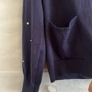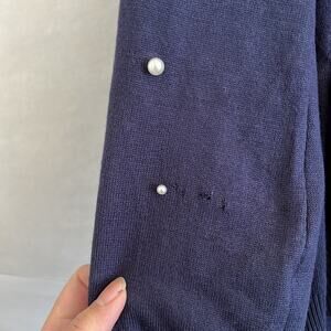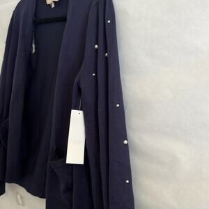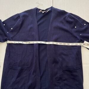 Chloe and Jasmine Pearl Cardigan Women’s Size M Navy Blue Sleeve Open Front READ
