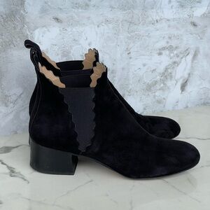 Beautiful chloe ballet flats. EU size 35. pale powder pink. Pre-loved, see photos for condition. Some very slight coloration on leather on left shoe. Not very noticeable, but it's there. Very hard to find style.