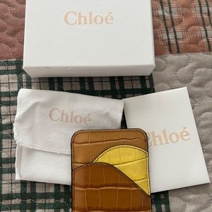 Chloe crocodile print card holder. Like new. Yellow/tan color.