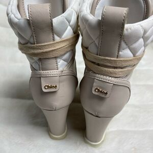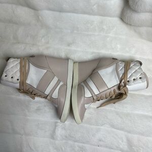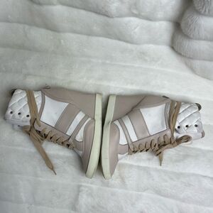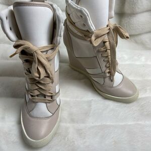 Chloe high top wedge sneakers in white suede and tan leather trim size E…