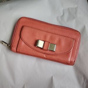 Chloe long wallet Zip Around Zippy Lilly Ribbon Bow Genuine leather Coral Pink