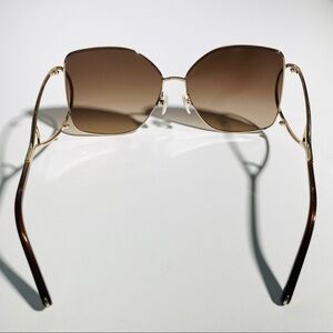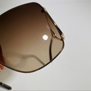 Gold frames. EUC. But there is 1 hairline scratch on the lower left lens (last photo) nothing else noted. Everything else in excellent condition. Super chic!