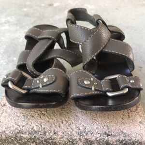 Super cute and in good condition crisscross sandals. Check out the pictures color is like a mushroom gray. He’ll height is 4 inches platform. Height is .25.