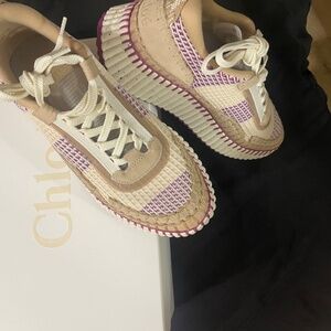 Almost new sneakers from Chloe authentic only used a few times comes with original box and. Duffle bags for each shoe goes for 800.