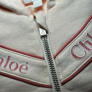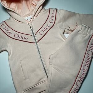 Sweats set, hoodie jacket with beautiful Chloe logo going through the chest and arms on jacket and straight down the side of the pants. Size 18M. Brand new without tags. Never worn never tried on!