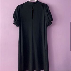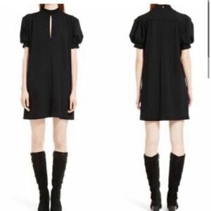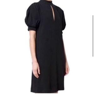 The Chloe Black Midi Dress is a sophisticated choice for work or cocktail events, featuring a chic mock neck and stylish puff sleeves. Its elegant mandarin collar and flowing silhouette offer a refined look, while the solid black color ensures versatility. This dress embodies Chloe's signature blend of modern simplicity and timeless elegance.