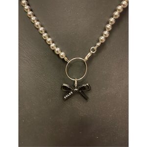 Chloe Bow Pendant on a NON BRAND silver plated 17 inch beaded choker. #chloe
