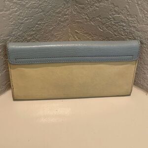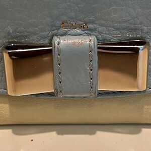 Chloe Calfskin Lily Continental Long Wallet Colorblock Blue Cream And Silver Bow