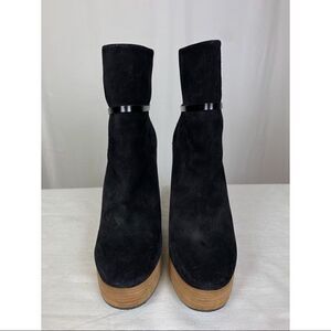 Chloe Crosta Suede Wood Platform Wedge Booties