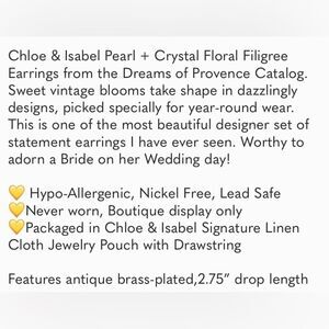 Chloe + Isabel Pearl + Crystal Floral Filigree Post Earrings NWT