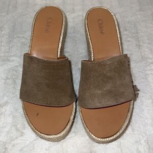 Chloe Platform Suede Fringe Espadrilles Size EU 37/ US 6.5