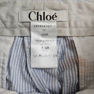 Great pre-loved condition Chloe pants white and blue stripes color. The tag says T38 for the size. Have some sign of use, and the 2 buttons on the back are missing. One is by below the belt, and one is in the back pocket. Please see all photos for more details and measurements.