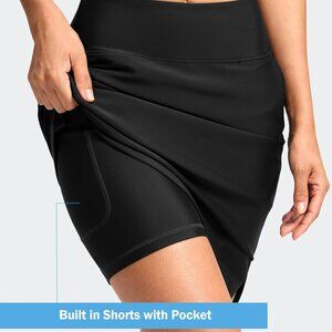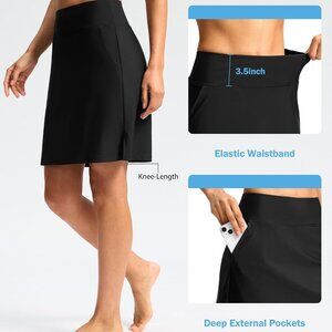 Chlorine-Resistant Women's 20" High-Waisted Swim Skirt with Pockets - Black