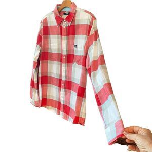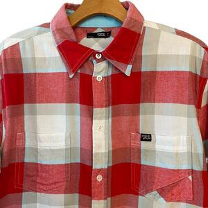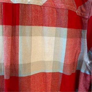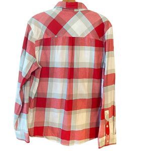 ChloroPhylle Sz S Red Teal Soft Flannel Marley Button Down Collar Pocket Shirt
