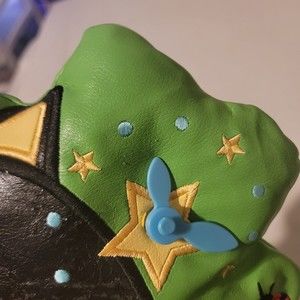 velcro back contains battery operated electronic clock device, string loop for hanging, hour & minute dials hands