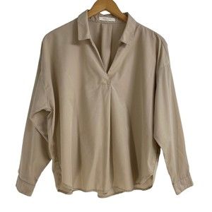 Chocol Raffine Robe Womens Lightweight Pullover Long Sleeve Beige Blouse Size S