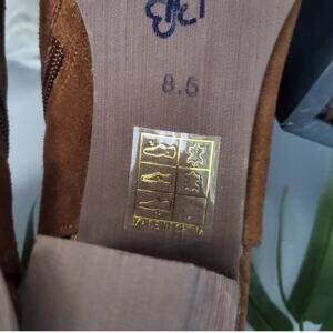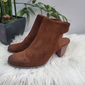 Chocolat Blu Brown Haaz Suede Sling Chunky Heel Shoe Booties 8.5