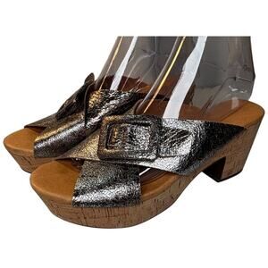 Chocolat Blu Galaxy Leather Chunky Platform Heel Size 9 Metallic Silver Gray Y2K