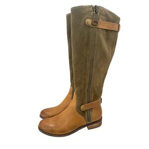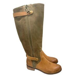 Chocolat Blu Leann Brown Leather Suede Knee Hi Boot Side Zip Burnished Toe 7
