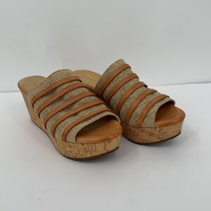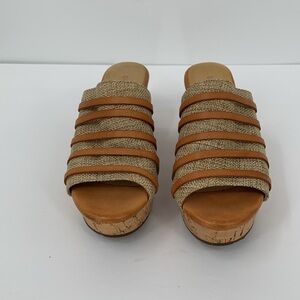 Chocolat Blu Wapi slide wedge platform sandals cork tan shoe clog brown strap 7