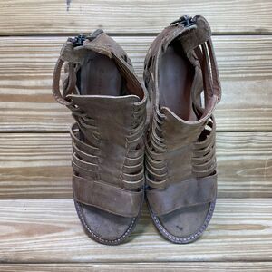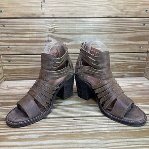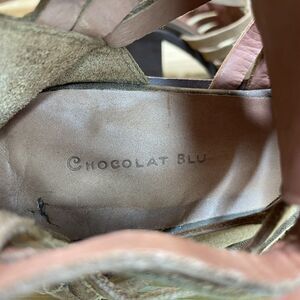 Chocolat Blu Womens EU 38 US 7.5-8 Block Heel Sandals Brown Leather Woven Shoes