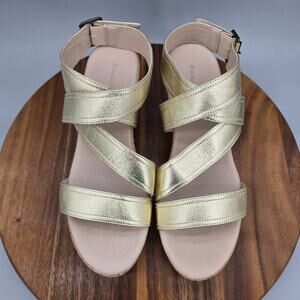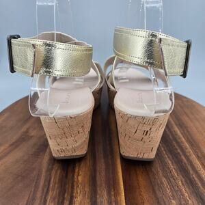 Chocolat Blue Yona Sandals Womens 9.5 Gold Leather Wedge Platform Buckle Straps