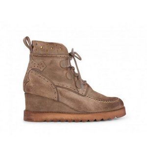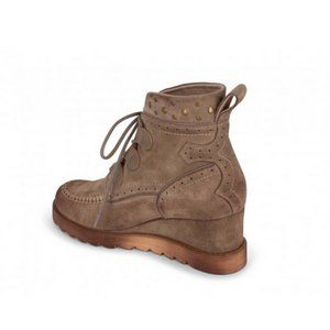 A moc-stitched toe and artfully studded collar elevate a soft suede bootie crafted with a wrapped wedge heel and grippy platform sole.