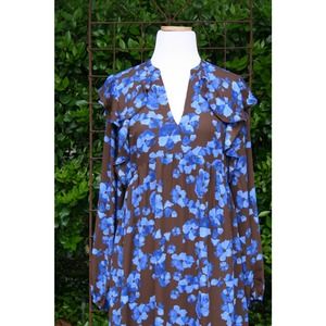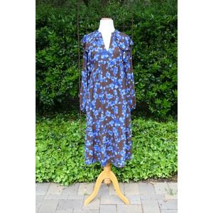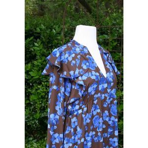 Chocolate Blue Floral Ruffle Prairie Tent Dress ShabbyChic Romantic CottageCore