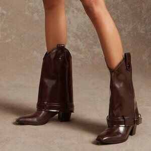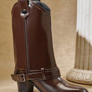 These chocolate brown block‑heel mid‑calf boots blend casual confidence. The classic boot silhouette features a sturdy block heel for steady support and a sleek mid‑calf rise that elongates the leg. Soft leather finish adds subtle shine, while the versatile design pairs effortlessly with denim, dresses or tailored pieces for day‑to‑night looks.