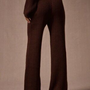 Chocolate Brown Casual Women's Wide Leg Chunky Knit Sweater Trousers