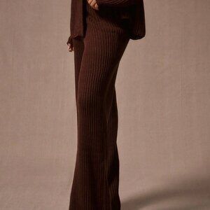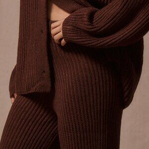 Chocolate Brown Casual Women's Wide Leg Chunky Knit Sweater Trousers