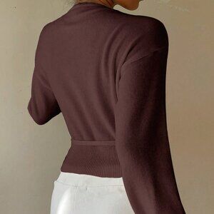 Chocolate Brown Casual Women's Wrap Tie Front Cardigan