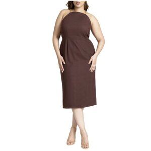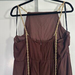 Chocolate Brown Chain Detail Halter Midi Eloquii Dress 16