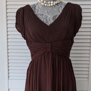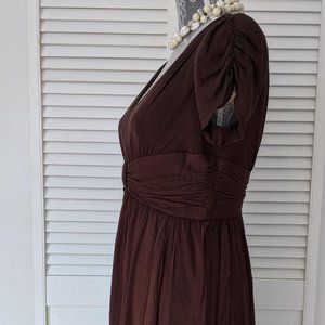 This chocolate brown dress can be worn on different formal occasions. it has a high waist and long zipper on the back.