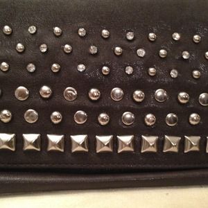 Studs and Rhinestone Clutch. chocolate brown in color. Comes with chain.
