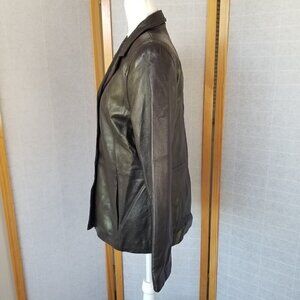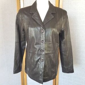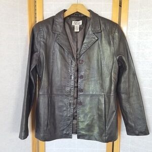 Chocolate Brown Leather Blazer Jacket Style & Co Lined Four Button Small VTG