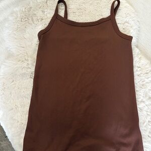 Chocolate Brown Ribbed Knit Cami | Stretch Slim Fit Tank - Size Smal