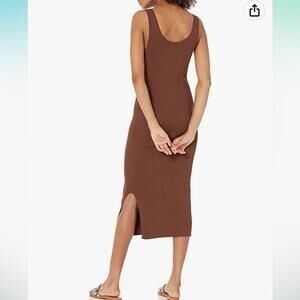 Chocolate Brown Ribbed Midi Sleeveless Dress
