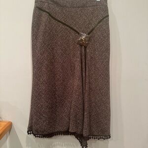 Chocolate Brown Skirt Vintage with Medallion Accent & Pom-Pom Trim Sz 8