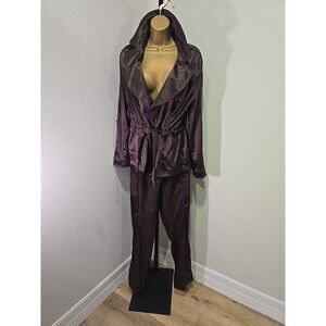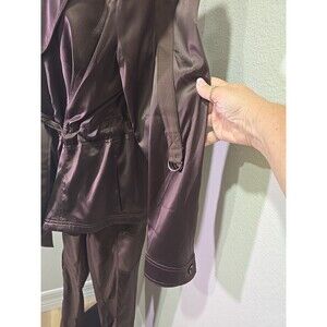 Chocolate Brown Suit Womens 10 Jacket Pants Satin Belted Stretch Ponte Collared