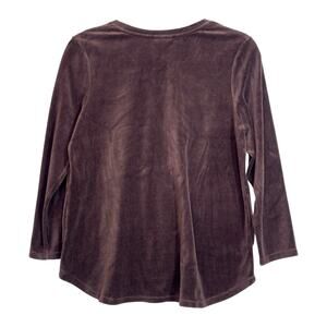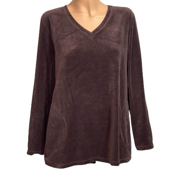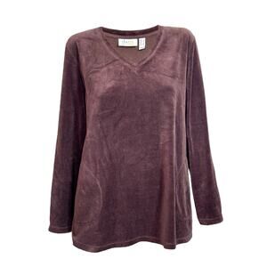 Chocolate Brown Velour Pullover Top XL V Neck Relaxed Fit