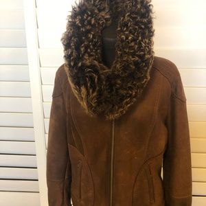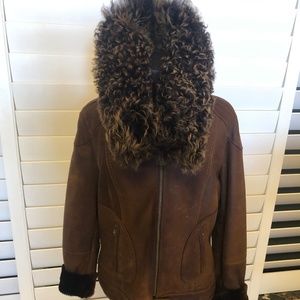 Chocolate Brown short SHEARLING LEATHER COAT - Fits sizes 7-9