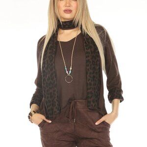 Chocolate Color Top With Leopard Print Scarf