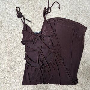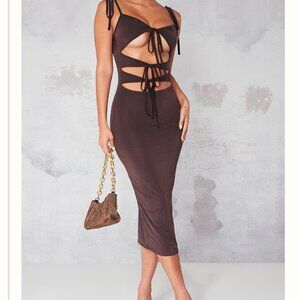 Chocolate Slinky Multi Tie Detail Midi Dress