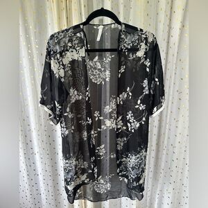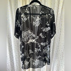 Chocolate USA Floral Sheer Short Kimono Lace Trim Open Swim Cover Up Cardigan L