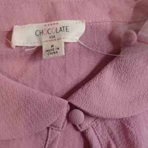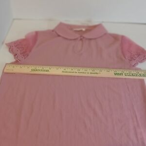 Chocolate USA Women's Medium Mauve Keyhole Blouse with Lace Sleeves