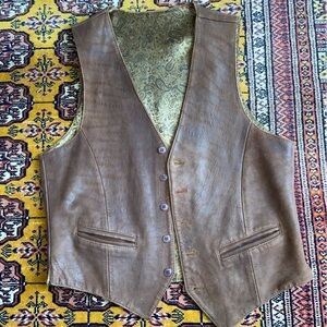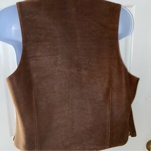 The suede leather vest is nice paisley lining it’s size large, and has a great broken in luck.