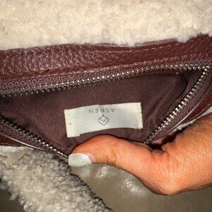 Gorgeous reddish brown faux leather with faux Sherpa details. Silver toned hardware.