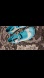 They feature a distinctive turquoise and cream brogue-style print on a canvas or fabric upper.
