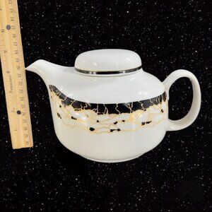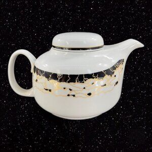 Chodziez Porcelain Teapot Yellow Black Abstract Design Made Poland Vintage Retro